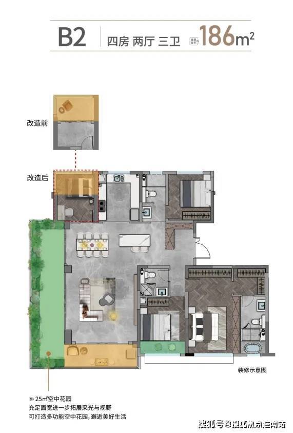 效果图建面约186㎡ 四房两厅三卫