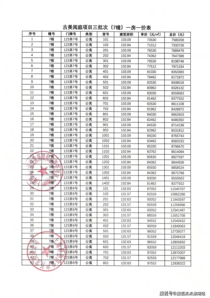 一房一价表