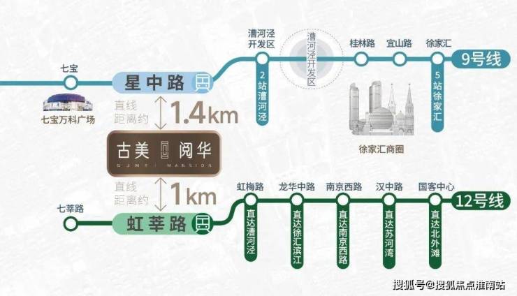 坐拥双轨交交通大动脉,12号线直达漕河泾、徐汇滨江、南京西路、苏河湾、北外滩等核心板块;9号线1站可达七宝万科、 5站徐家汇、13站浦东陆家嘴、世纪大道等;规划中的嘉闵线未来可联通大虹桥枢纽 ,畅通全城。