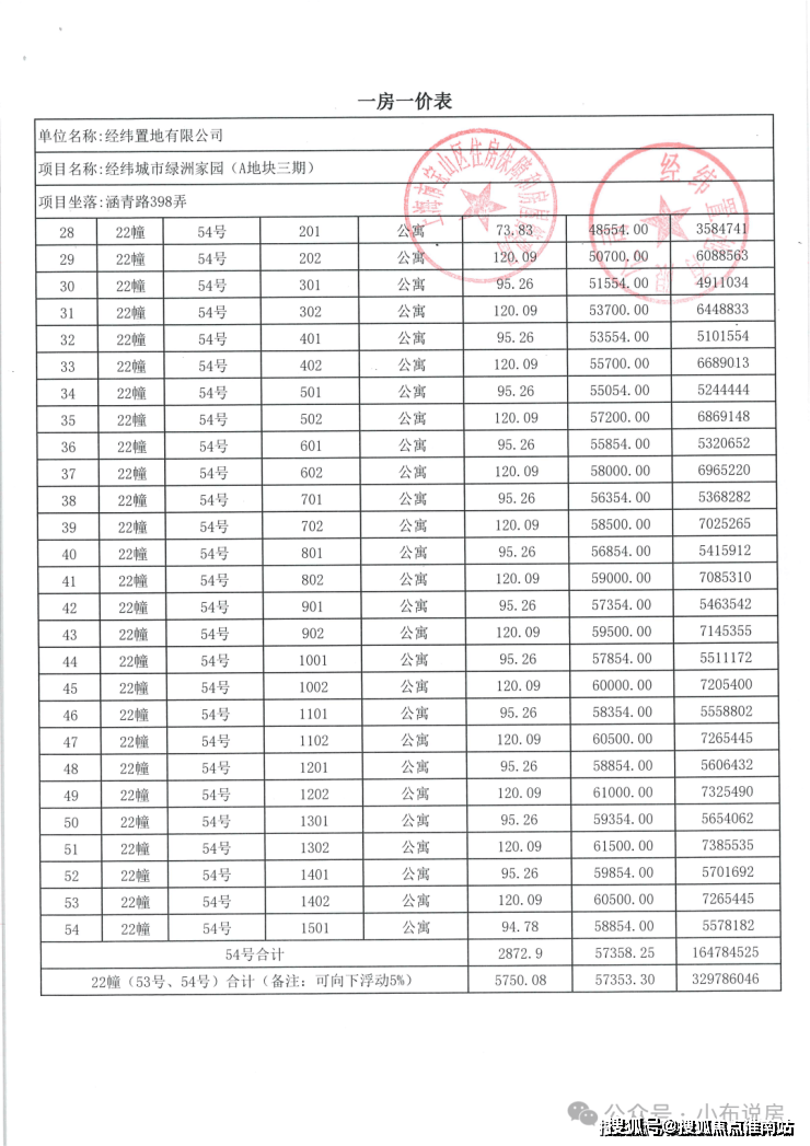 完整一房一价表如下: