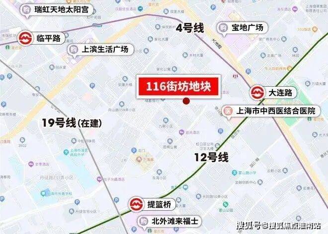 立体交通|四轨三隧两快速:4/12号线提篮桥站·19号线(在建)·大连路/新建路隧道·北横通道·内环高架||商业帝国|北外滩来福士(600m)·瑞虹太阳宫(350m)·白玉兰广场(1km)·外滩万国建筑群(2.4km)