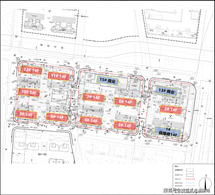 根据规划设计方案显示 ,项目拟建11幢14F住宅(含1幢保障房)、以及商业、配套用房等建筑。