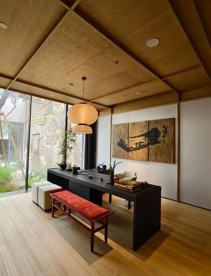 巧妙融合风雨连廊、架空层与下层式庭院等设计,模糊自然与建筑的界限,同时借鉴中式框景、借景、对景的精髓,打造出园中有园、移步换景的雅致意境。