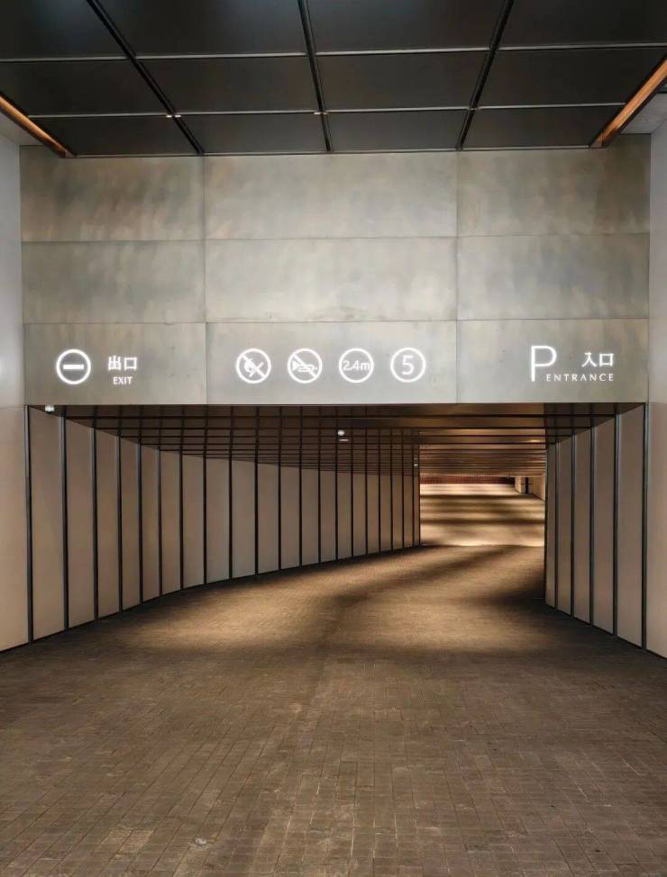 约36米长的主入口,与这其他项目流行的巍峨豪阔、金碧辉煌已截然不同,黑白原石的碰撞,没有五颜六色的炫石,主打一个高级黑白灰,从社区主入口便能领略这份高级感。它并未将大门设在主干道,而是巧妙地选择在西侧次路,营造出一种归隐都市的谧静氛围。以维纳多石材为主体的双门设计,左侧是人行入口,右侧为车行入口,秩序井然,人行车行各司其侧,搭配古朴铜门,尽显宏伟与艺术格调。太行金老石皮打造的景墙,借框景手法呈现流水山石的空灵意境。
