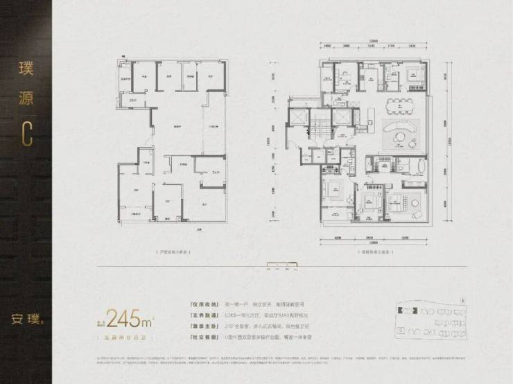 安璞的精装:210㎡、240㎡、245㎡户型由MDO设计倾力打造,280㎡户型则由CCD设计巨献,精装标准堪称顶配,尽显奢华。