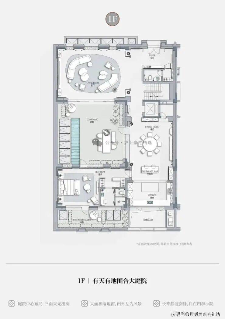 赠送庭院、露台、双层地下室,实际使用面积最高达1500㎡,得房率行业领先