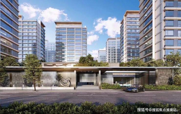 尺度大气的现代风格门头,入口展现艺术水苑、叠水瀑布以及层级绿化,彰显归家仪式感。