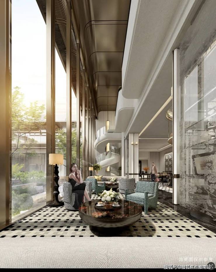 而且大家有没有发现,这里的 约10米高左右的玻璃,是一整块无拼缝的材质,造价非常昂贵,也能让面前的景观发挥最大价值。