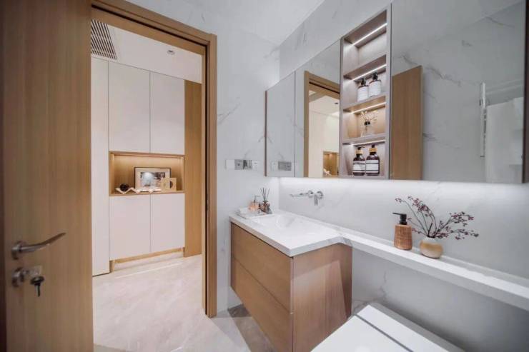 全系精装交付,配日立中央空调、科勒卫浴、方太厨电、圣象地板,标准优于同价位竞品。
