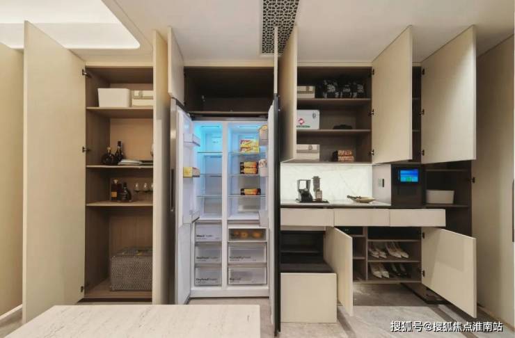 创新"S墙"设计,在分户墙处增设“凹型空间",嵌入式冰箱可以轻松隐形。