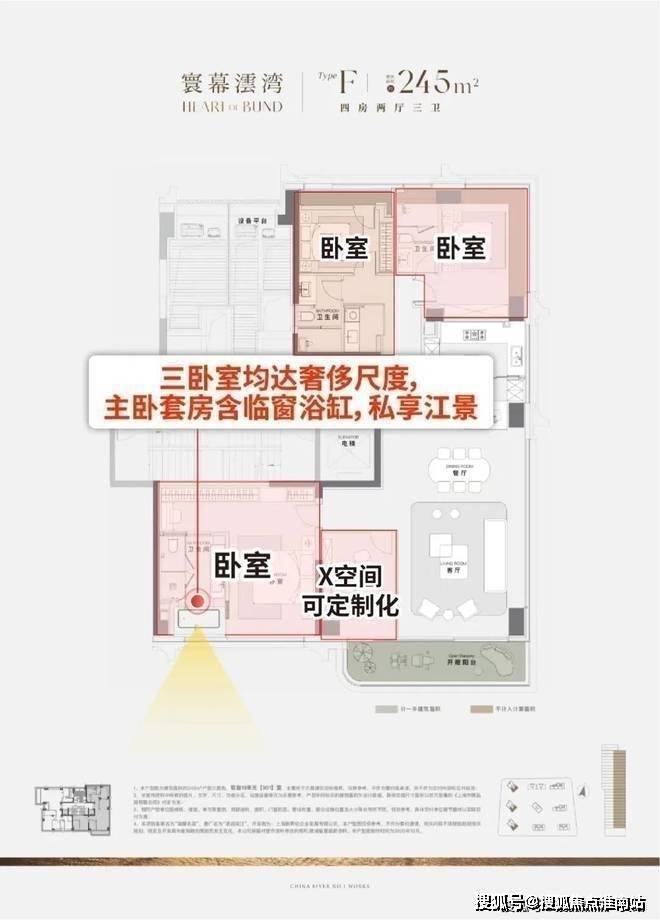 ④三卧全尺度奢适,主卧临窗浴缸瞰江!X空间定制方案可选,实现多场景布置!