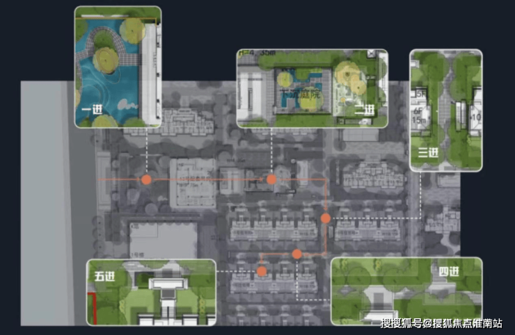 项目在动线上精心打造8大核心景观-五进归家礼制。