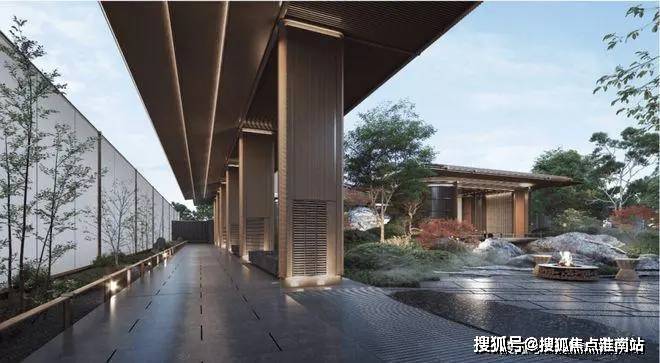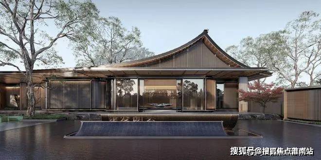 “人字形”的屋顶,意指东方屋脊,融合书法笔触意蕴悠长。不见传统祥云玉石和景墙延伸,反而是大面积玻璃、金属格栅堆料,经典简约,用材设计现代感十足!