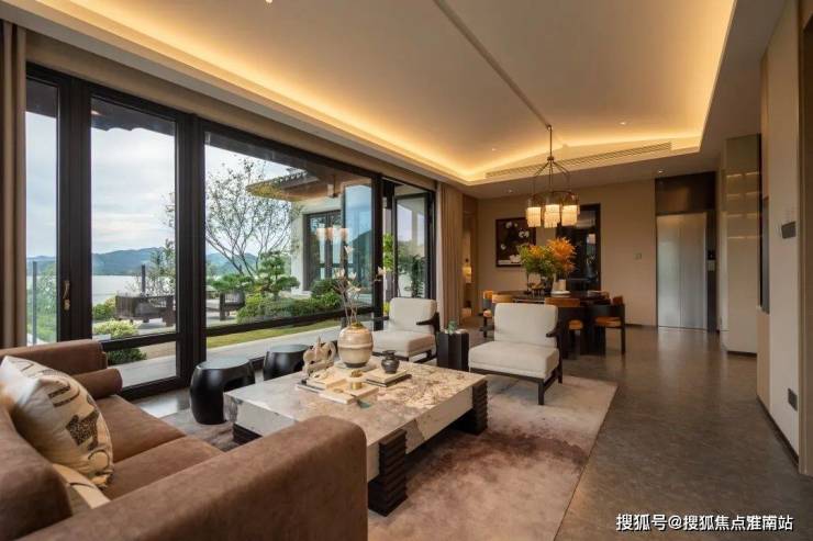 当然,在产品上大尺度的面积段让设计游刃有余。项目部分大户型利用地形,形成“双庭院双首层”,“室内空间”直接延伸至庭院,讲究一个气韵空灵,场域开阔,足以匹配高端人士身份。
