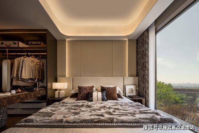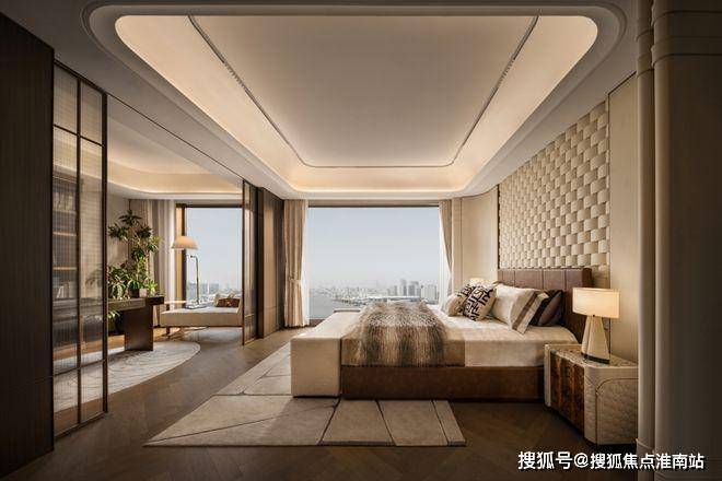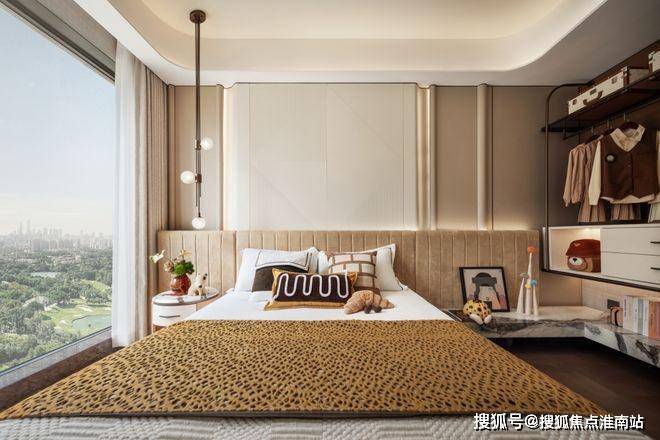 当沙湖最后的涟漪沉入暮色,主卧套房正展开一场与城市喧嚣的温柔对抗。