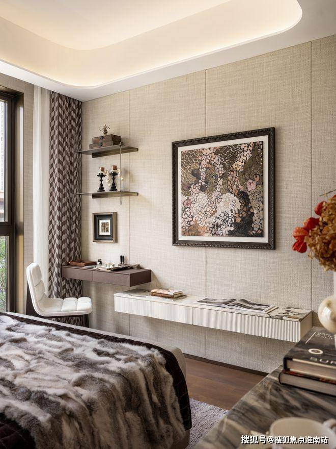 次卧皮革背景墙似被时光轻吻过的绸缎,尽是松弛高级。