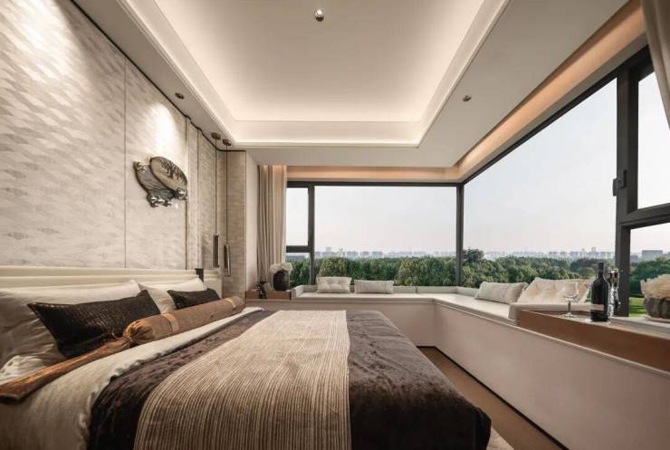 玄关和厨房旁都打造了收纳空间,设置多个飘窗,卫生间、厨房全部“扩容”,尤其是主卧270°全景飘窗的设计非常少见,未来窗外的美景将一览无余。