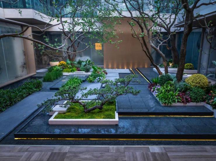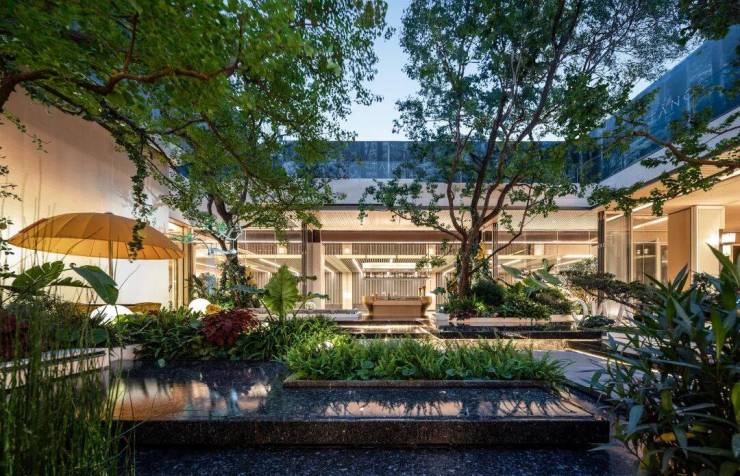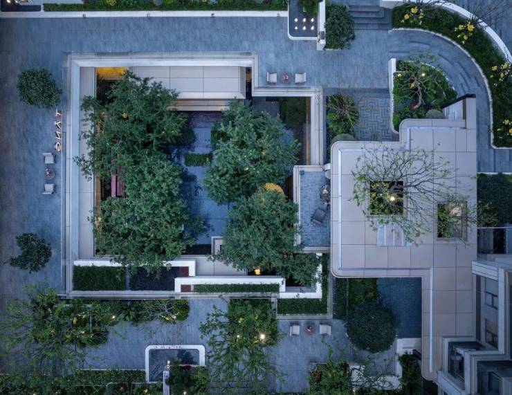 整个会所巧妙利用建筑高差,营造立体多维的景观层次,打破沉闷压抑感,使下沉式会所与庭院景观自然衔接,实现社交空间与生态场景的无界融合。