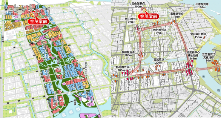 根据规划,上海宝山站(在建)围绕“立体公园城市”的理念,通过立体街区、花园办公、生态住区等模式的建构,力求一座面向未来、面向世界的TOD国际汇合住区。(信息来源《大吴淞地区专项规划》)