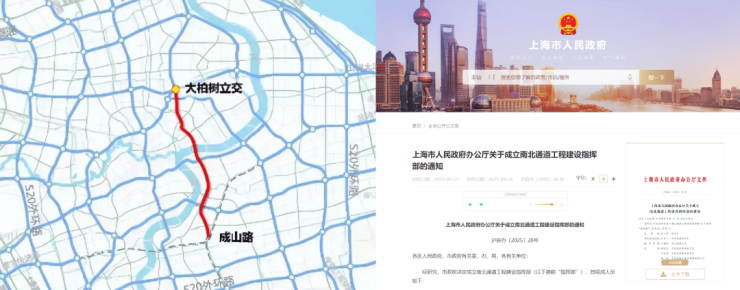 9月26日,上海市政府官宣:决定成立南北通道工程建设指挥部,为南北通道规划按下加速键;与此同时,军工高架路正式通车。(信息来源:上海市政府官网)