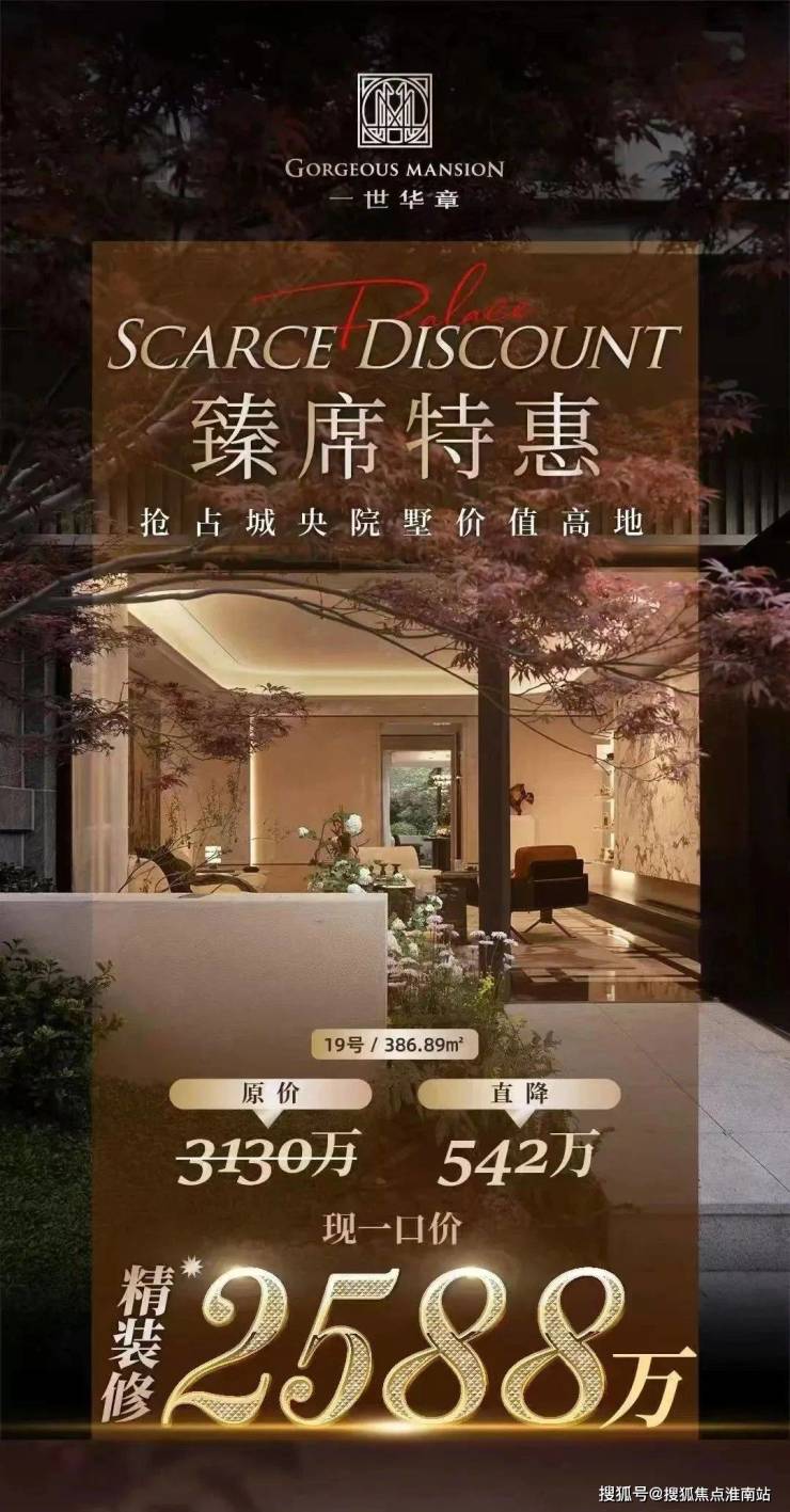 内中环法式商墅「一世华章」本周推出特价房源,建面约386㎡联排,降价542万,总价仅2588万!1.5万/㎡豪装交付,预约可看!