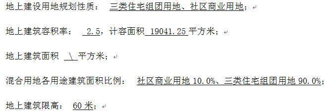 该地块的出让面积为7616.5平方米,容积率为2.5,计容面积约19041.25平方米, 装修标准为4000元/平方米。
