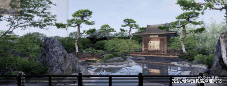 项目采用三段式入户:一进辋川入画(主入口空间),二进:闲庭碎影(戏台庭院),三进:临风听湖(自然庭院)。入户大门屋顶采用唐代“重檐歇山顶”形式配上台基上的唐代建筑标志阑干,入院后有一副唐风画作,其次以亭台楼榭、理水叠山的中国园林意境,重现盛唐大明宫百花争艳,小桥流水,落叶如金的景观。社区景观层层递进,让住户置身其中,体验唐风山水。