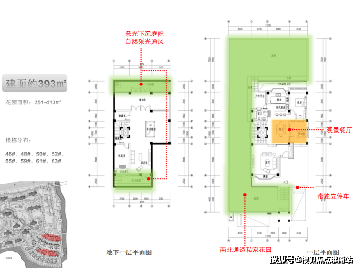 建面约393㎡双拼别墅,花园面积251-413㎡