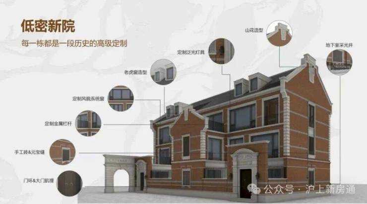 聚焦到风貌别墅本身,静安里应用 8大定制级 的产品设计手法,通过定制级手工砖、定制级山花造型、定制级铁艺栏杆、定制级入户壁灯、定制级的风帽雨水斗等部品部件,每一处细节都是匠心打磨的痕迹
