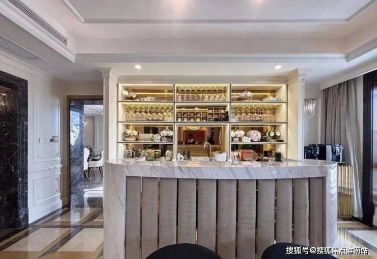 电梯快速直升云端,进入美宅之后,玄关处颇有art deco装饰风格的复古气息扑面而来。