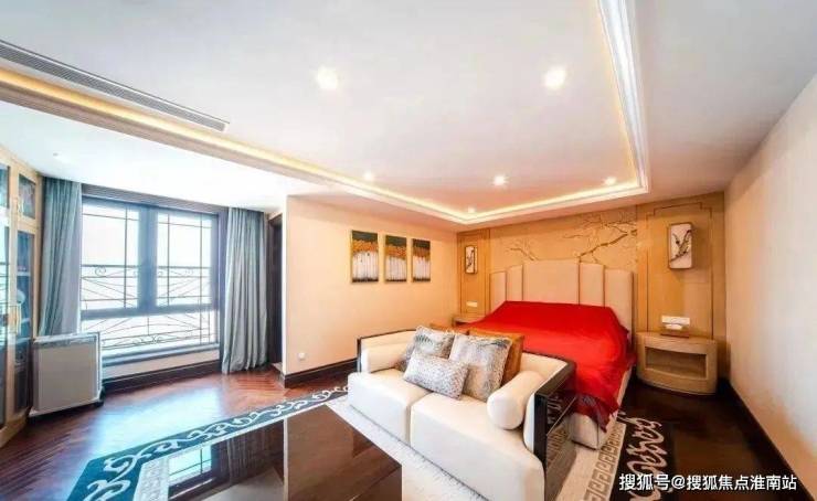 主卧套房带衣帽间及套内卫浴,超大进深是一大亮点,窗景视野自然也十分优越。