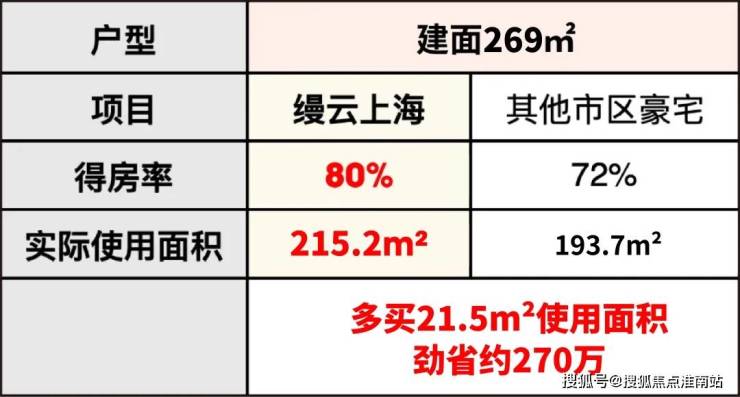 同样面积段,缦云上海多享受起码约21.4㎡的实际使用空间,这就是项目能做5房的根本原因。