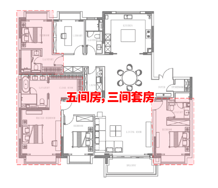 尤其是如今主力建面约269㎡的5房4卫户型,更是有三个远超其他竞品的优势: