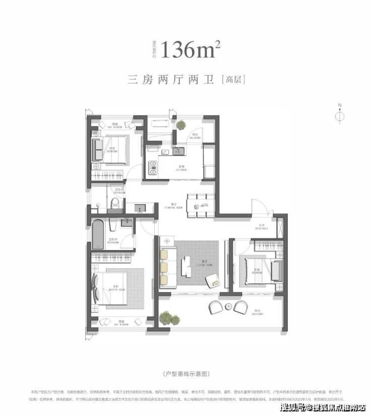 【建面136㎡3居】540万-分布于5号楼 ,2梯2户,层高3.00米,总楼层23F
