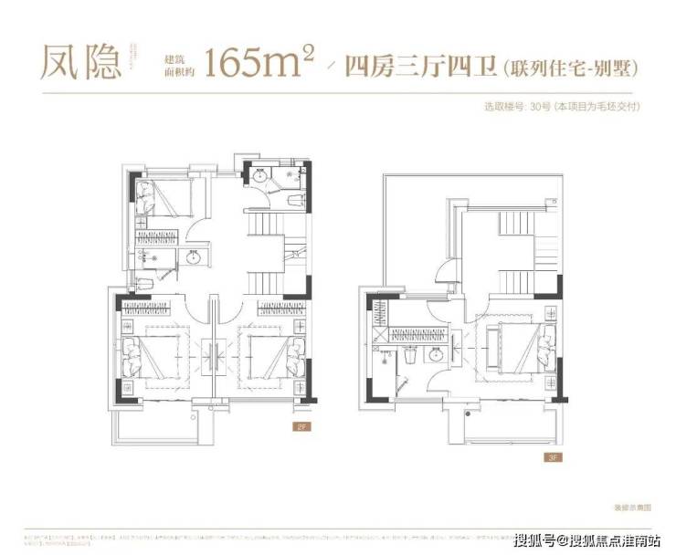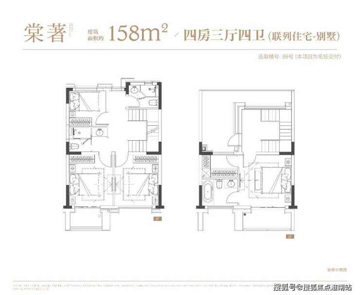 4层叠墅分为上/下叠,上叠建筑面积约139㎡,下叠建筑面积约142㎡,均为4房设计。