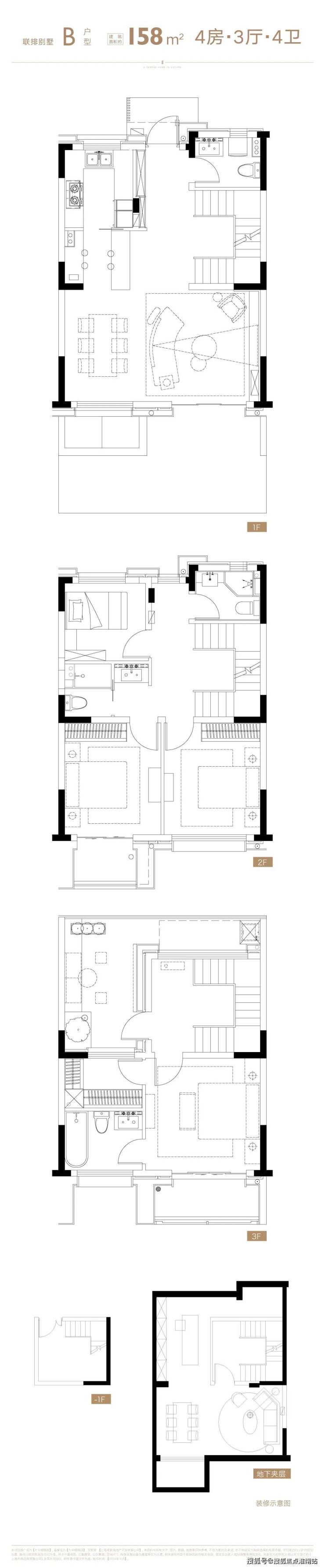 联排别墅主打约158-165㎡地上三层产品,带露台和相对独立的使用景观分区。