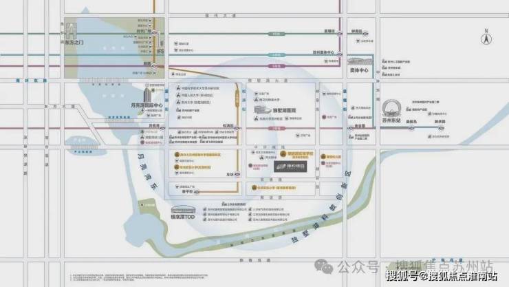 城市公园绿地环伺,项目约4KM范围内已打造成白鹭园、独墅湖生态公园、月墅公园、江滨公园、生命之源广场等约100万方生态绿肺。南侧政府重点打造约253万方吴淞江生态廊道,水系蜿蜒宽阔,滨水景观设计优美,未来将成为具有苏州特色的滨江景观长廊。