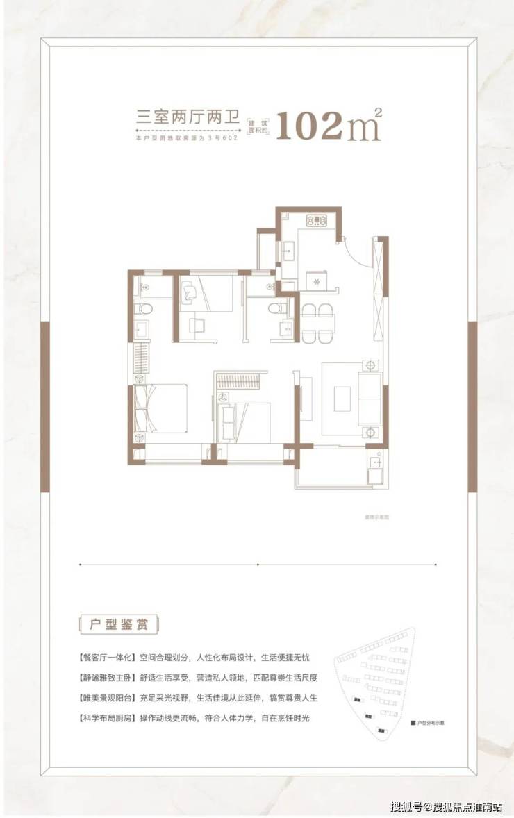 户型解析:三开间朝南+主卧套房设计+动静分离+全卧室带飘窗,采光优秀;厨房预留大尺度冰箱位;双卫设计,没有了“早高峰”的烦恼;主卧套房,尊享私密和奢阔尺度。舒适度和尺度感兼具,非常匹配精英家庭的生活追求!