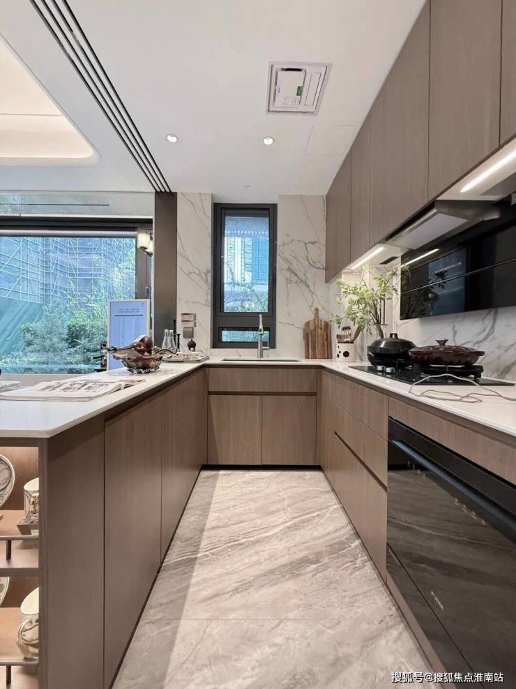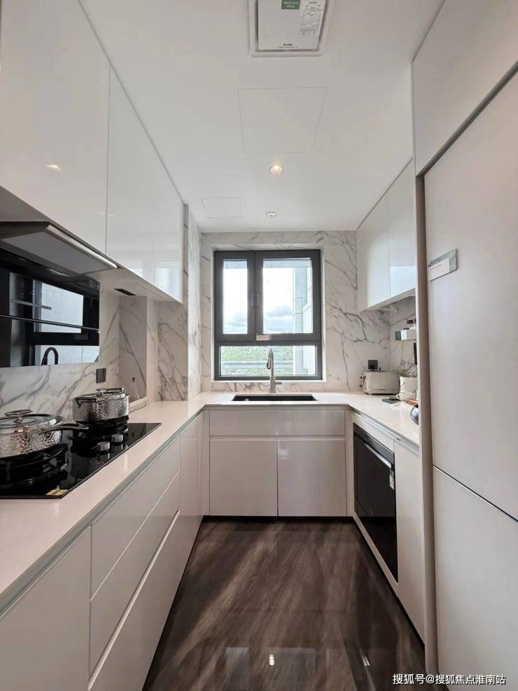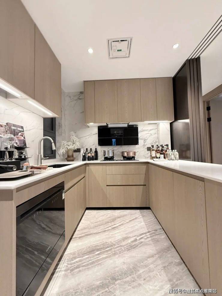 项目在餐厨空间的细节上把控也非常到位,U字型设计利用率更高,并且预留了冰箱点位。