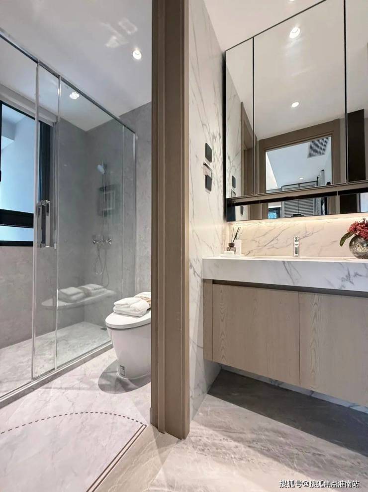 卫浴方面,采用科勒的水龙头、台下盆、花洒、星逸智能一体化马桶,艾美特的风暖浴霸等,更配置恒温花洒+滑竿+顶喷等。