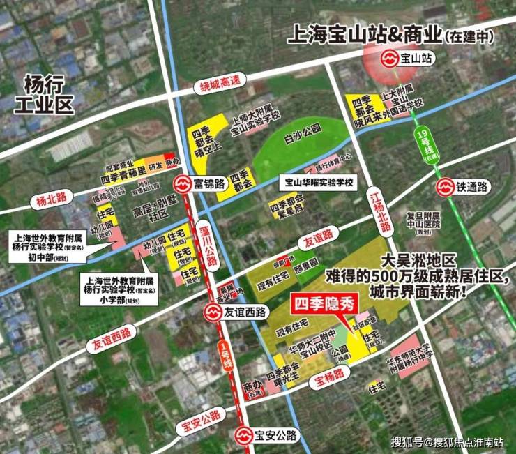 四季隐秀售楼处电话☎:400-998-9694✔✔ 宝山站(在建)总开发规模约50万㎡,预计27年通车,年客流量约5400万,沪渝蓉铁路、沪苏通铁路二期及19号线(在建)等在此处汇集。(信息来源:上海发布公众号)