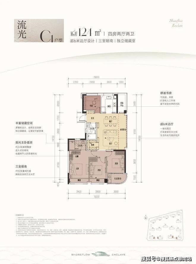 时舟里开发商预约热线:400-8567-334✔✔杭州时舟里官方售楼处电话☎:400-8567-334✔✔✔这款户型堪称四开间朝南的“流量王者”,南向面宽约13米,双联阳台+双飘窗设计,视野和采光优秀;套房主卧、双阳光次卧,颇有大平层的气势。