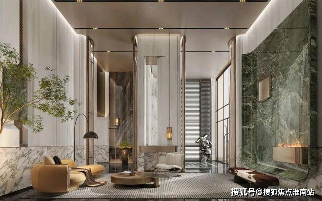以约70米宽的尺度,约9米高的鎏金天幕铺开。跨过这道门后,越往里走,越感受到未来绿城的水准。