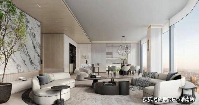 时舟里开发商预约热线:400-8567-334✔✔杭州时舟里官方售楼处电话☎:400-8567-334✔✔✔)开放式的客餐厅设计,吊顶侧边一些细节的处理与柜子的钢条和大理石的分缝有一些联系,整体立面的横向缝隙的高度都有一些相应的联系,让空间的感受更为整体并且相互之间有一些联系。
