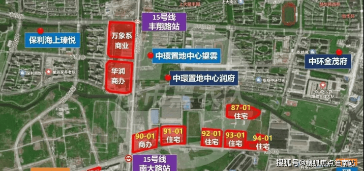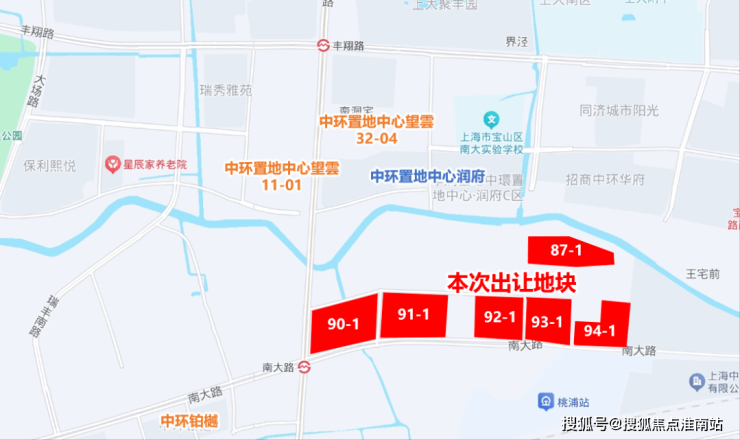 宝山区南大地块分为5个住宅地块(容积率为2.5-2.6)和1个办公和商业地块(容积率为7.2),建设用地总面积约9.9万㎡,规划总建筑面积约32.2万㎡。
