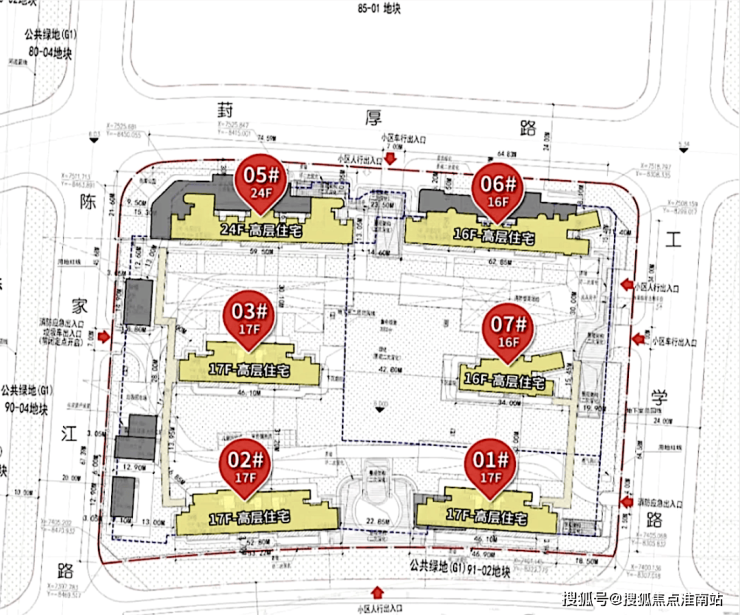 根据设计方案显示,该地块拟建5幢16-17F高层住宅、1幢24F高层住宅以及若干社区配套用房,共计规划约436户。