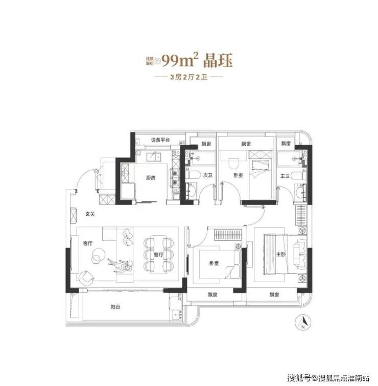 建面约99㎡三房户型图▼