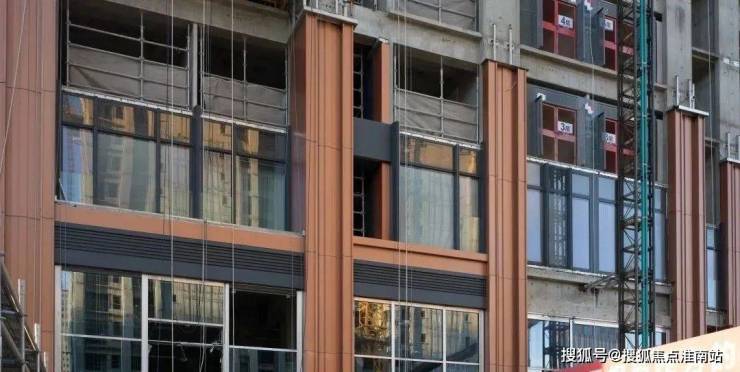 目前,在现场已经呈现出一部分的铝板立面的实际效果,金属质感相当惊艳。