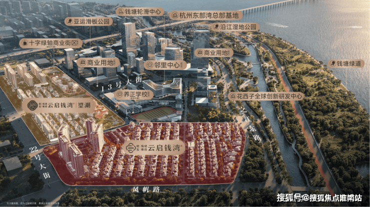 望潮所在的金沙嘴,是东部湾新城三大封面之一,与钱江新城二期一脉相承。