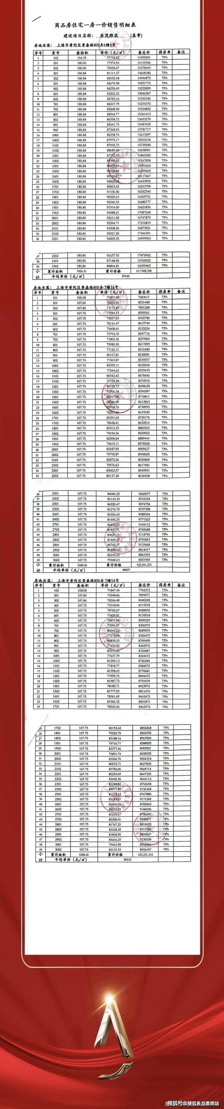 普陀金茂府一房一价表